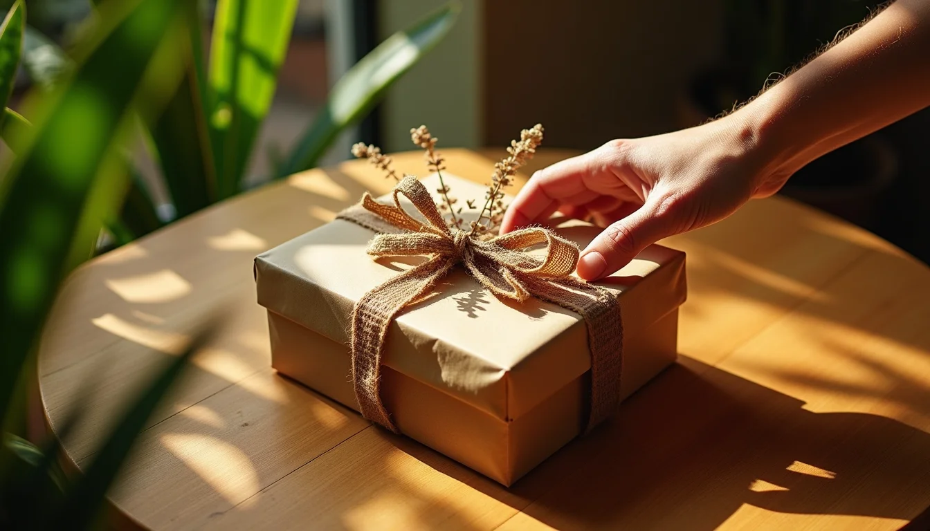 A textura ganha destaque, com madeira clara, bambu e algodão orgânico em alta. Esses materiais trazem uma sensação de conforto e autenticidade para o brinde.